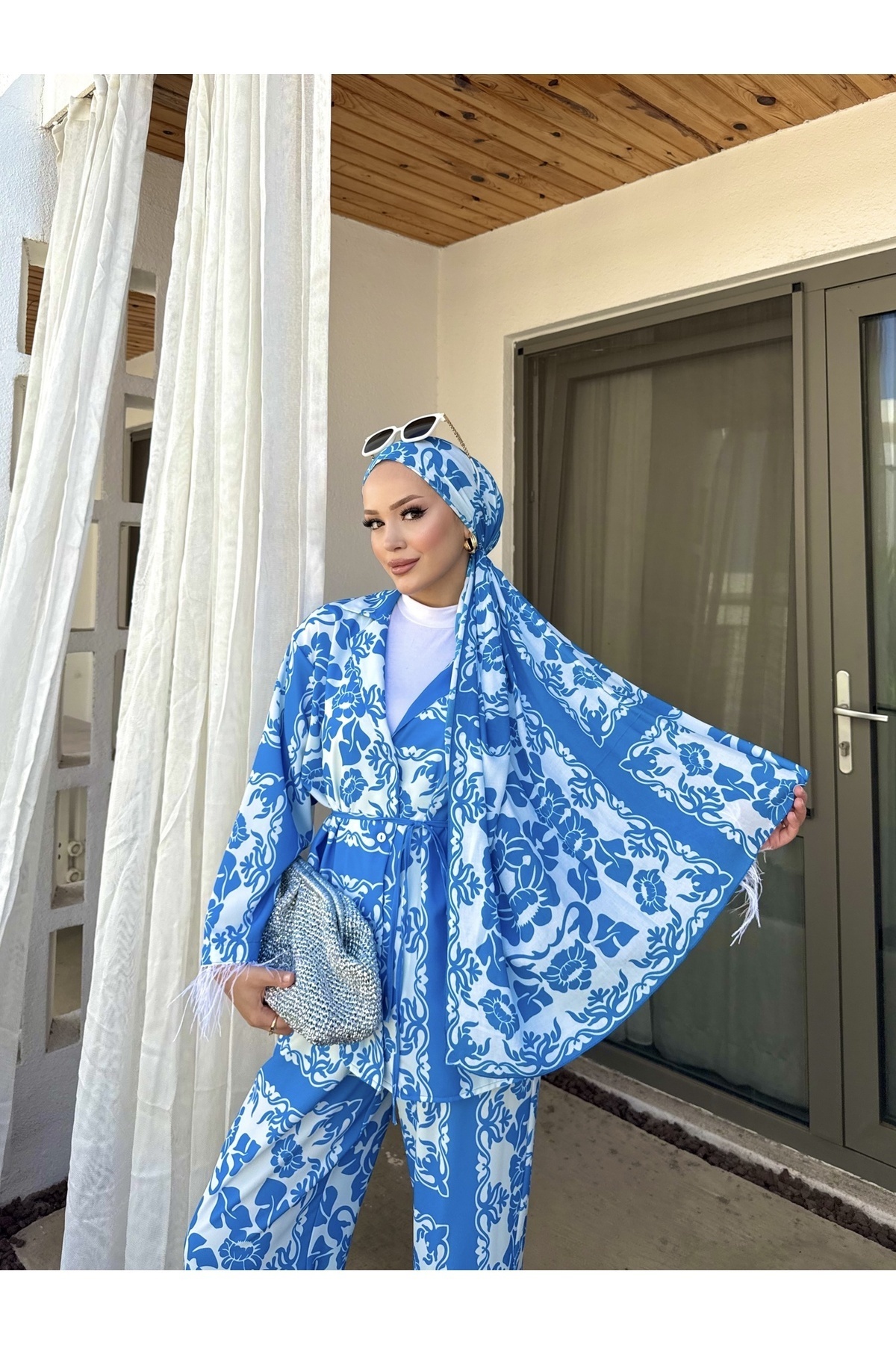 Melike Tatar Desenli Şal 32-503 STD MAVİ Özellikleri
