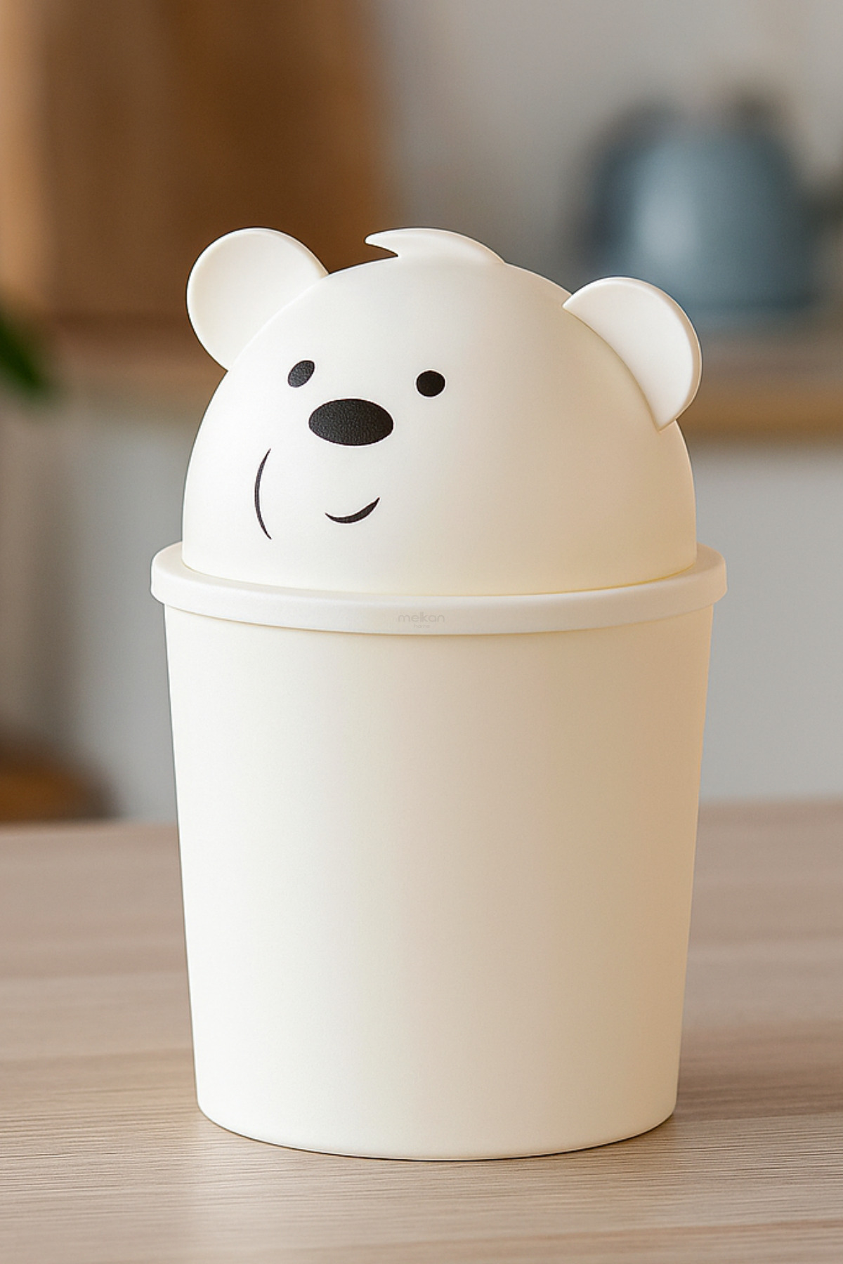Melkan Home Masa Üstü Çöp Kutusu, Ayıcıklı Çöp Kovası, Mini Çöp Kutusu, Masa Üstü Mini Çöp Kutusu 1 Litre Beyaz