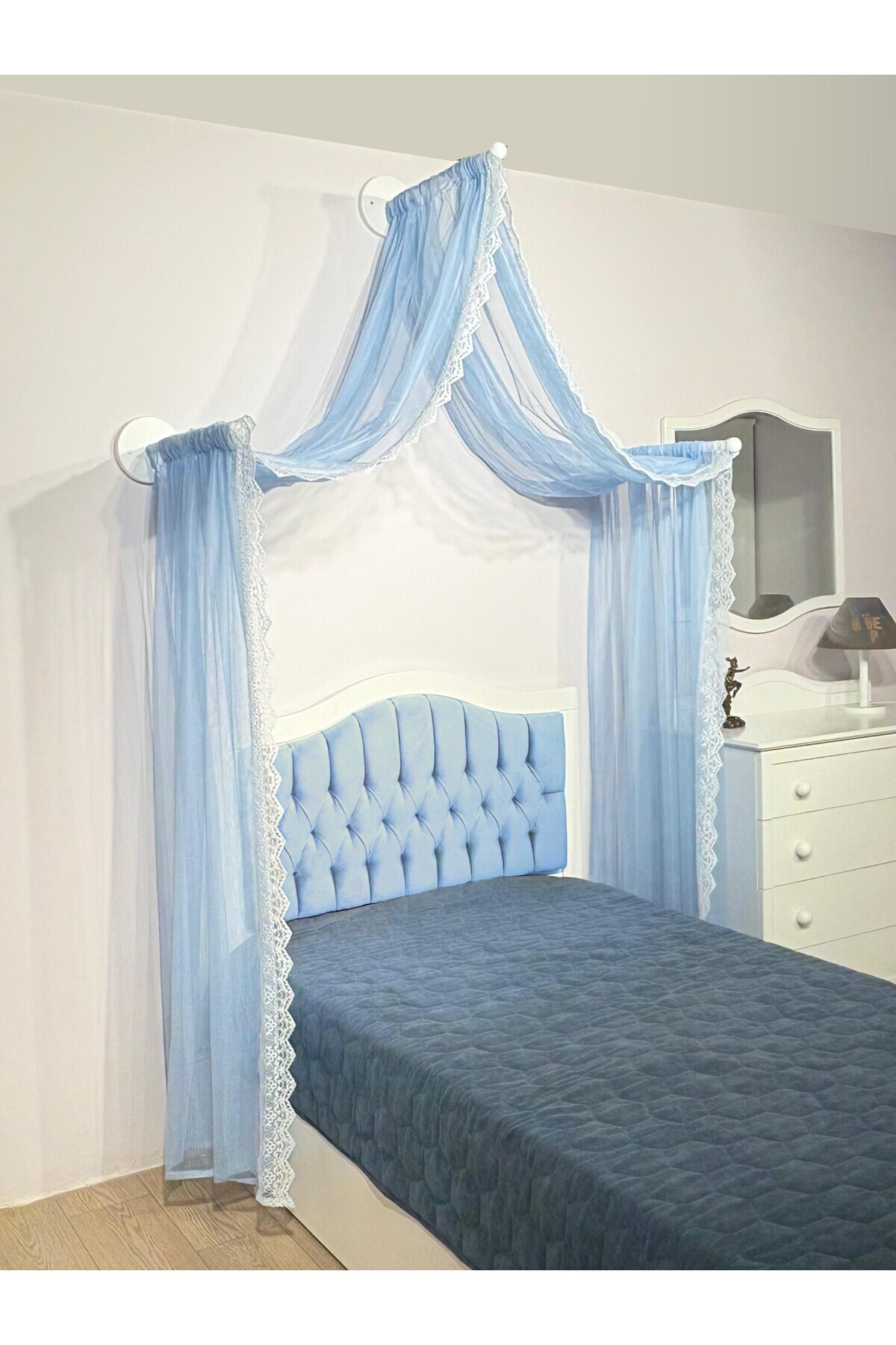 Meltem Duvar Tipi Tek Kişilik Karyola Cibinlik Seti (üçlü aparat + tül)