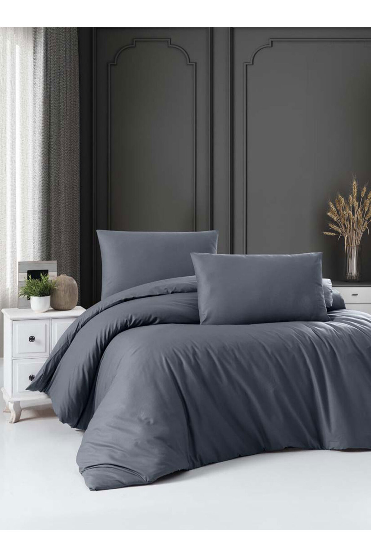 Menderes Home Cotton Collection Ranforce Tek Kişilik Nevresim Takımı Düzboya Antrasit