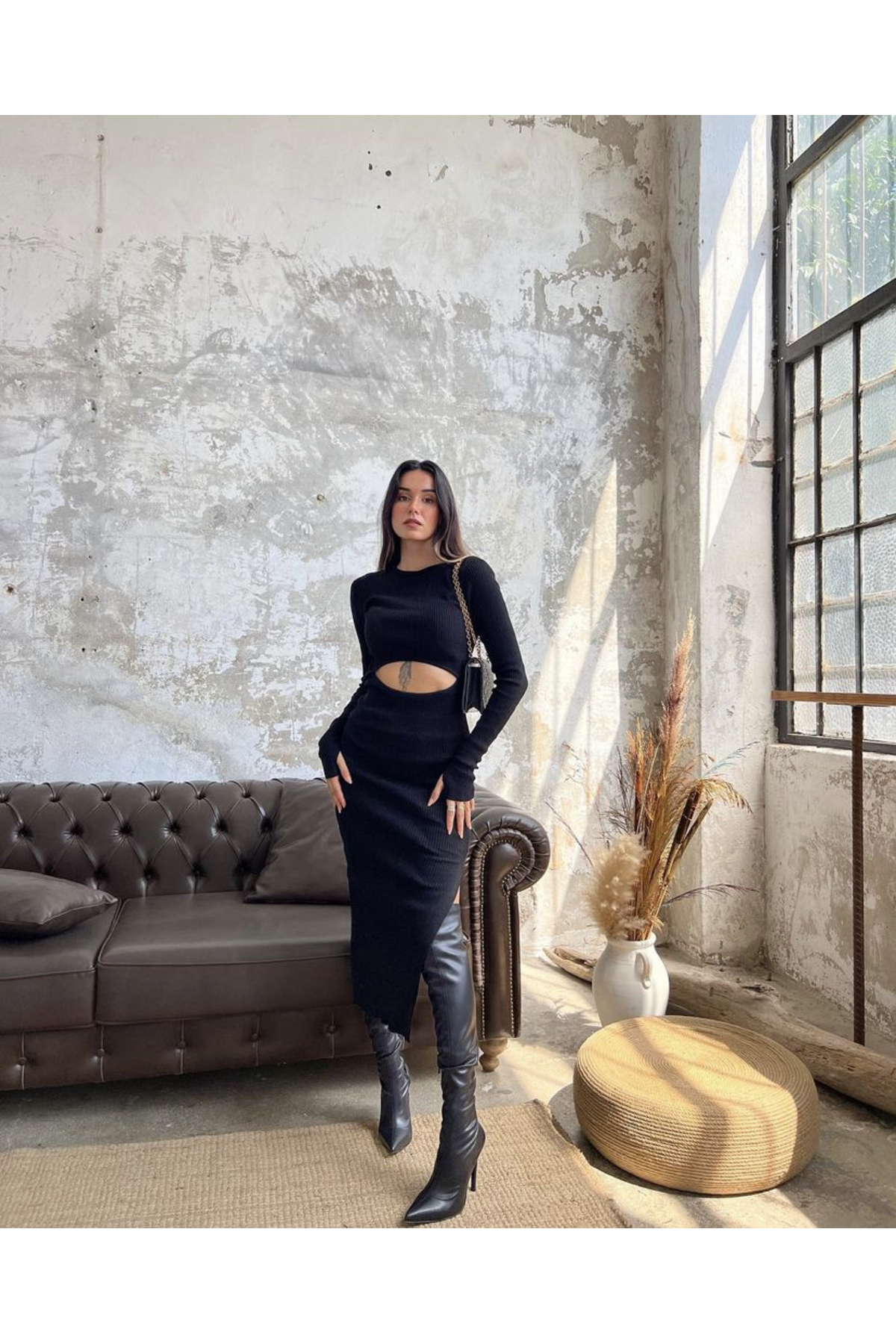 MERC Göbek Dekolteli Yırtmaçlı Elbise