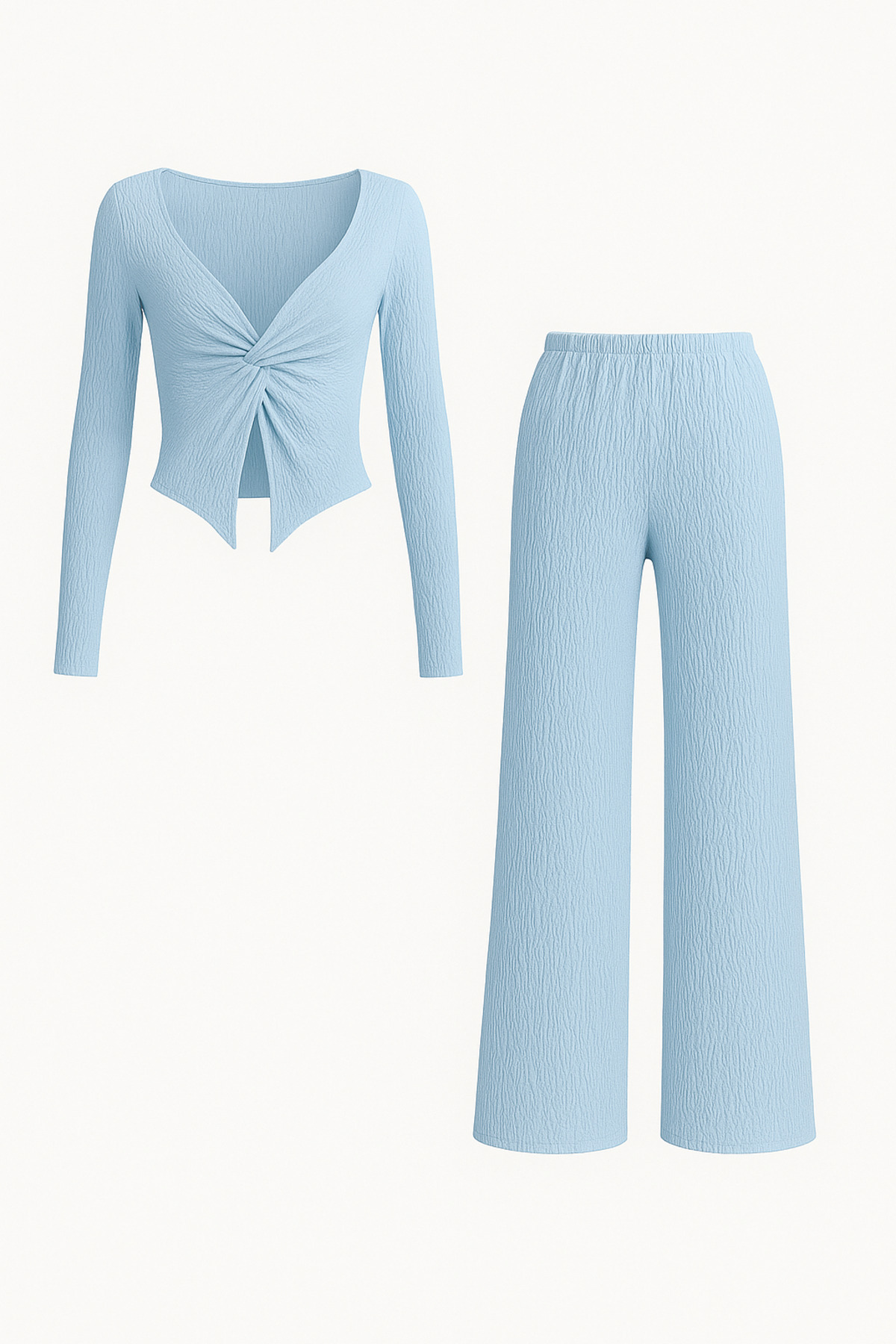 meren like your style Bebe mavisi önü büküm uzun kollu geniş paça pantolon alt üst takım