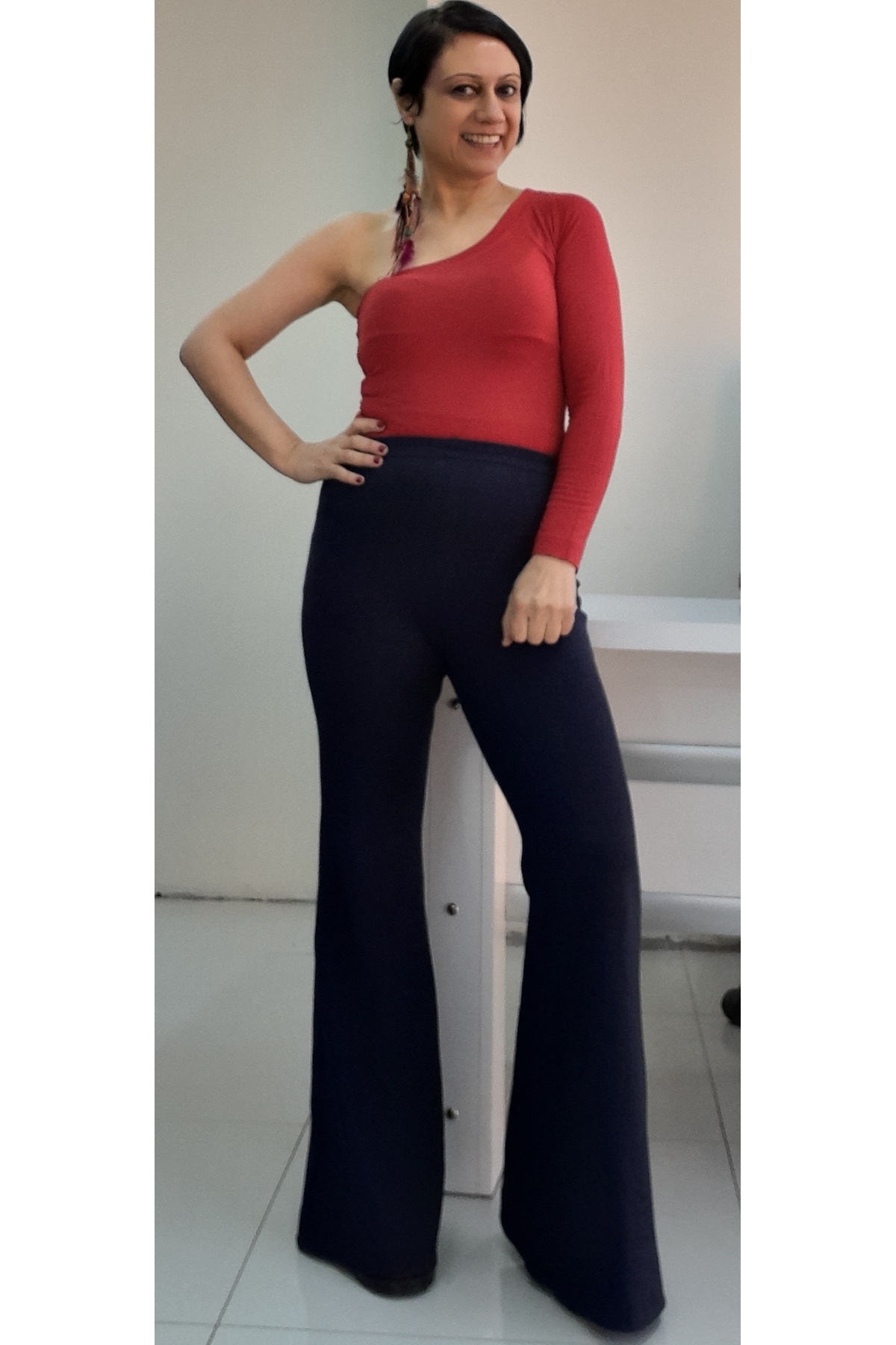 Mertcan Butik Lacivert beli lastikli İspanyol paça örme pantolon Özellikleri