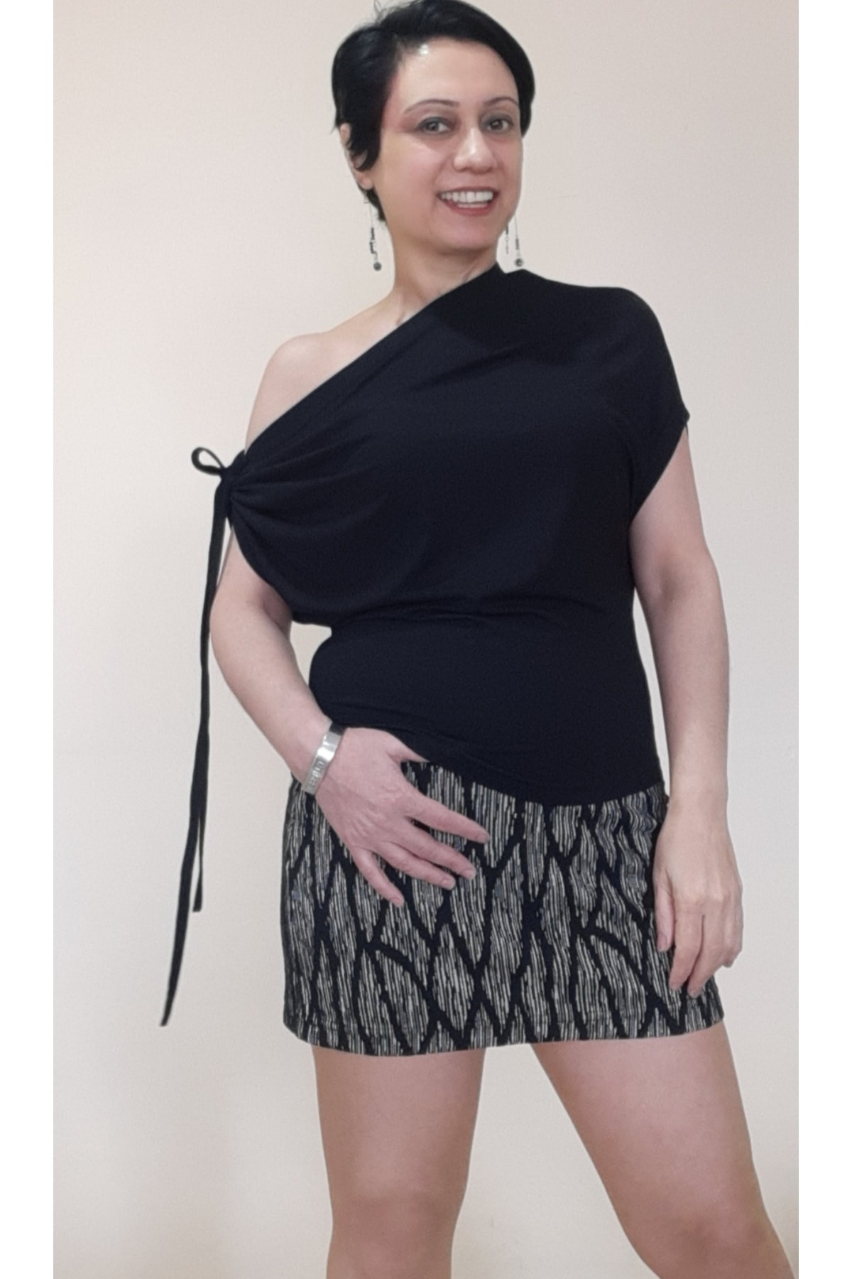 Mertcan Butik Tek Omuzu Bağcık Detaylı Tek Omuz Tişört