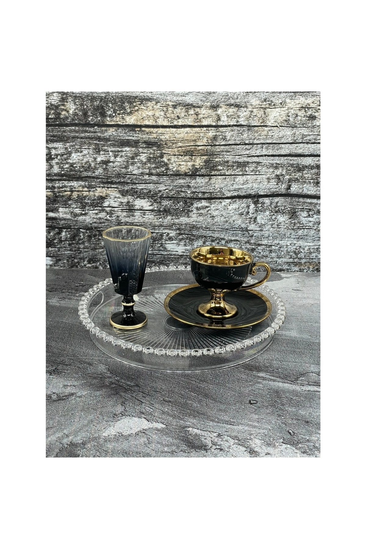 METROPOLAVM Boncuk Detaylı Yuvarlak, Mika Şeffaf Sunum Tepsisi 4 Adet