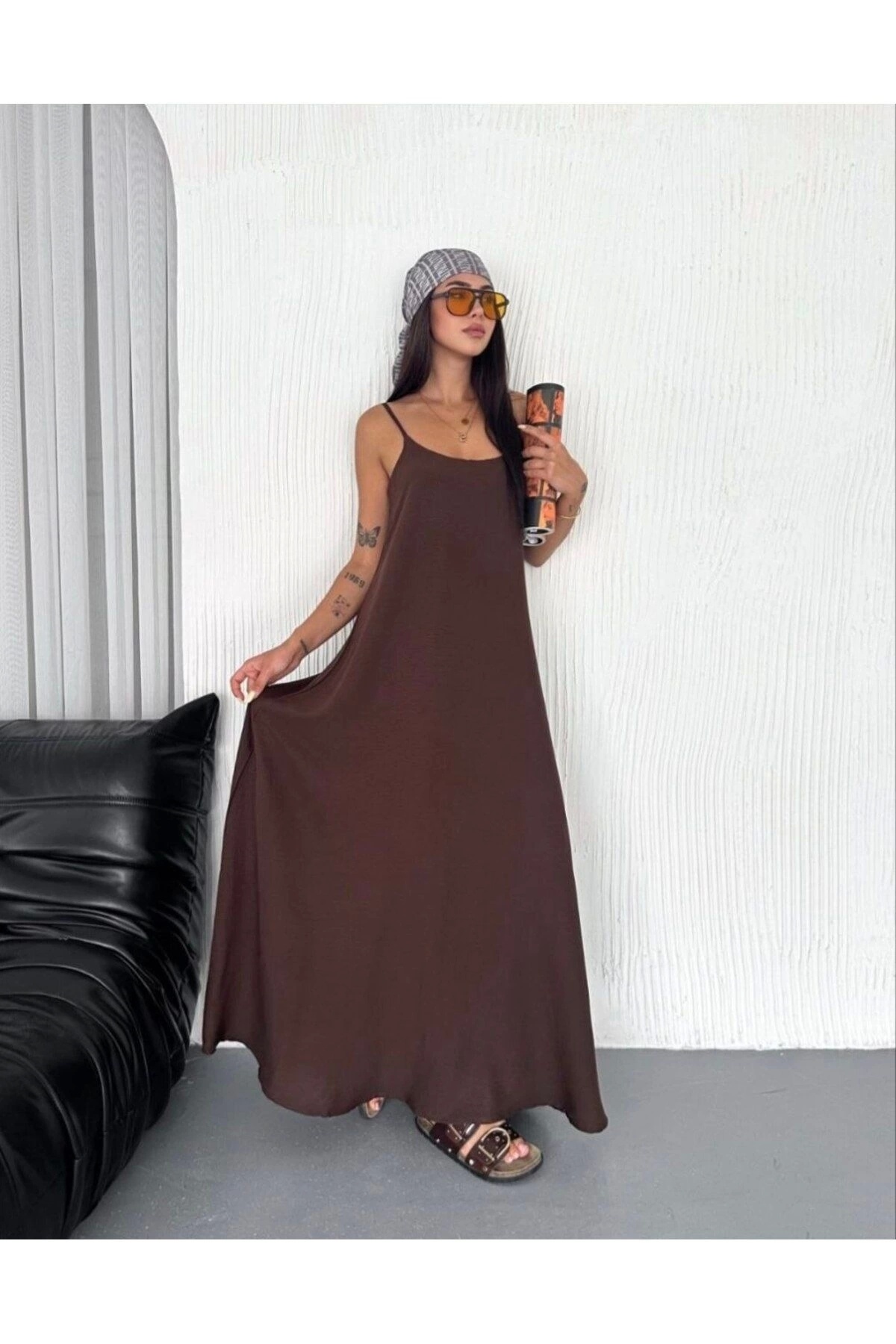 MetuCA Kadın Askılı Ayrobin Uzun Elbise Cepli Oversize Model Sırtı Açık Göğüs Dekolteli - Yazlık