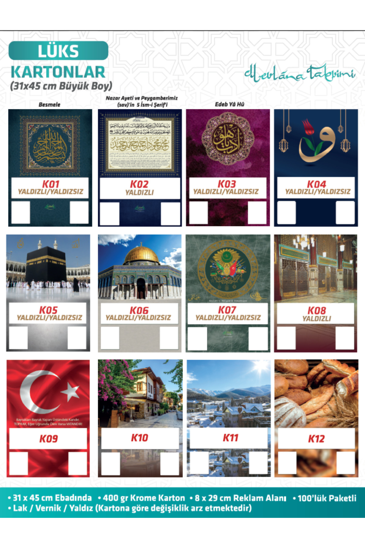 Mevlana Takvim Kartonu Özellikleri