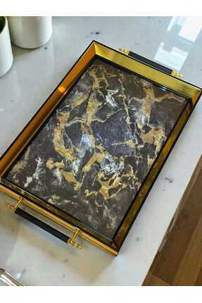 MiaPremium Kalite Orjinal İç Kabartmalı Cam Modern Çay Kahve Tepsi