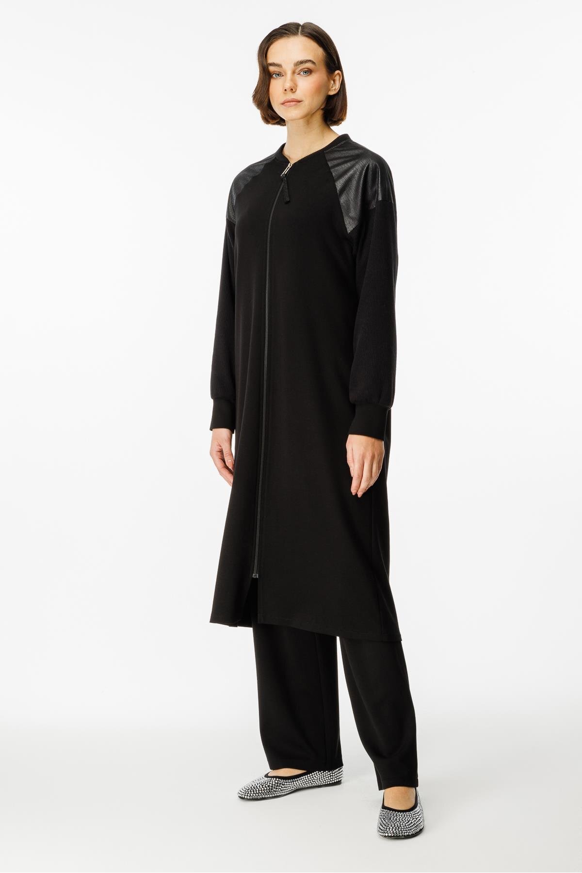 Micca Mix Garni Detaylı Örme Kap Ferace-Siyah