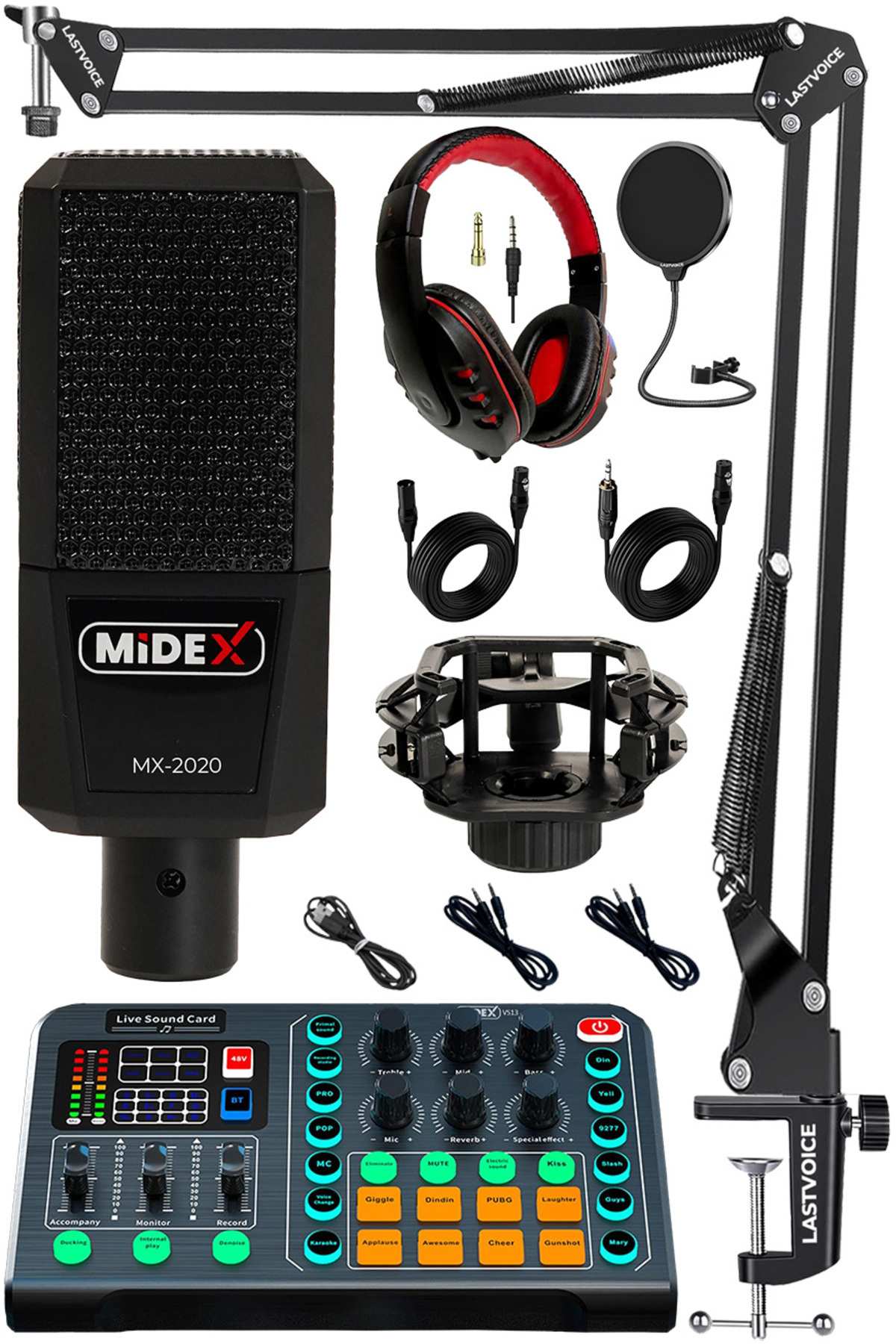 Midex Talent Paket-2 MX-2020 Mikrofon VS13 Ses Kartı Stüdyo Kayıt Canlı Yayın Seti