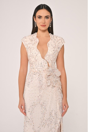 PULLIMM Halter Yaka Boncuklu Yırtmaçlı Elbise BAL151