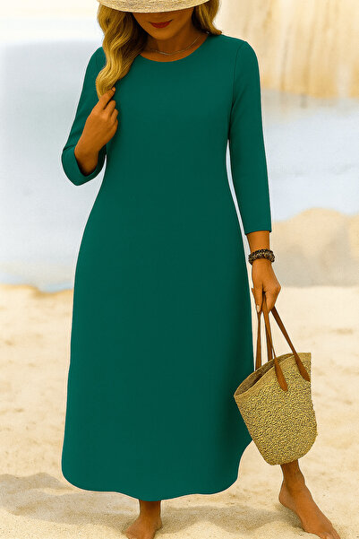 ESPİNA Kadın Uzun Kollu Etegi Oval Yırtmajlı Midi Boy Elbise