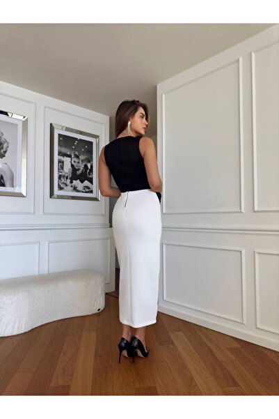 Bianco Lucci Kadın Yırtmaç Detaylı Dokuma Süet Midi Kalem Elbise 10969 60283696