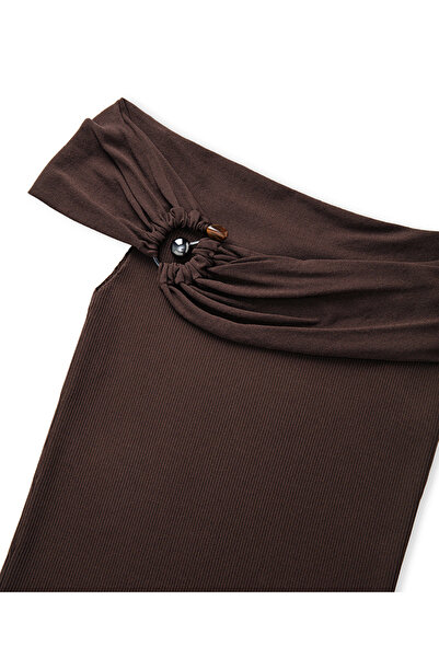 Setre Acı-Kahve Kolsuz Belden Kemerli Dar Kalıp Kayık Yaka Elbise