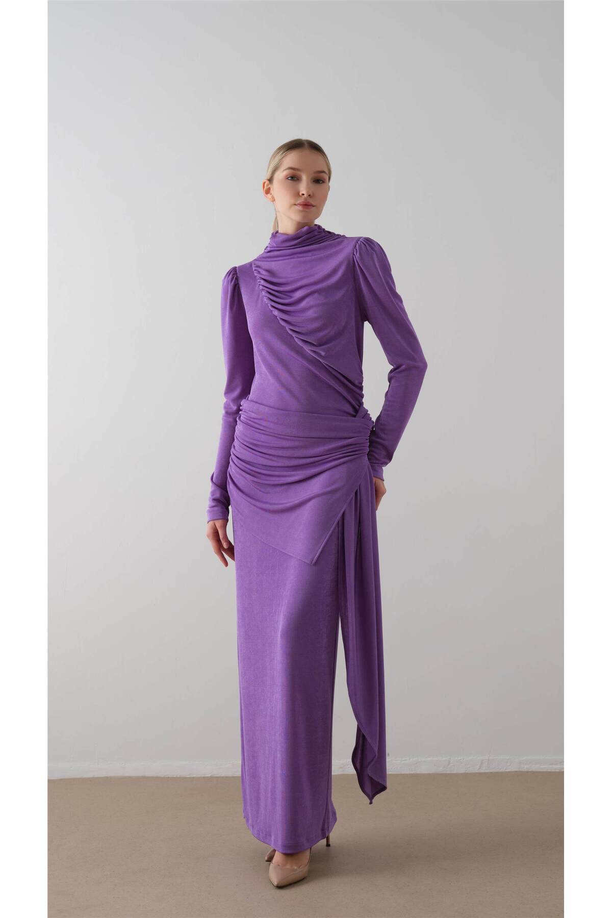 miha Hicran Önal DÖKÜMLÜ ÖRME ELBİSE Lila