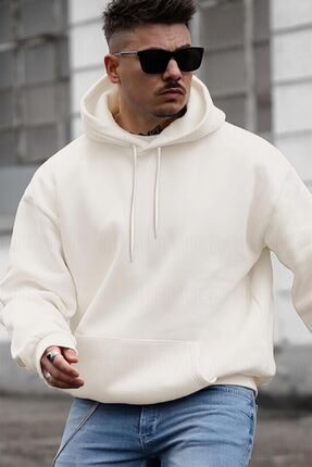Millionaire Kadın Kırık Beyaz Krem Ekru Spectacular Baskılı 3 Iplik Şardonlu Kapüşonlu Kanguru Cepli Oversize Sa