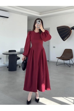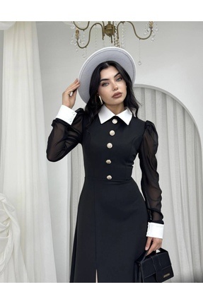 7437+ ÜrünMostpera Yarım Balıkçı Yaka Uzun Kollu Sırt Dekolteli Düğme Ve Fiyonk Detay Tasarım Mini Elbise