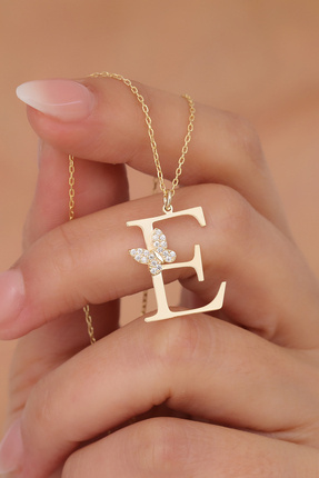 So Chic Minimal Kelebek 18 Ayar Sarı Altın Kaplama 45 Cm Gümüş İkili Zincir Kolye