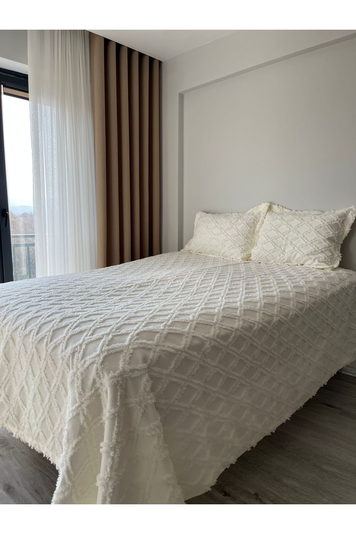 MİRATELİER Iskandinav Çift Kişilik Püsküllü Yatak Örtüsü