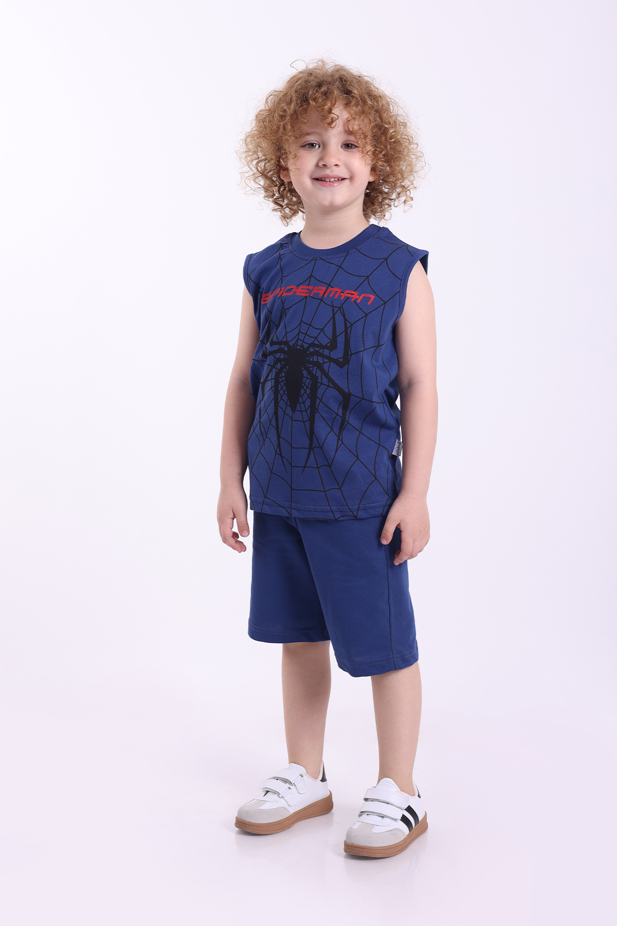 Mixima Örümcek Adam Baskılı Kolsuz 3-6 Yaş Erkek Çocuk Oversize Şortlu Yazlık Takım