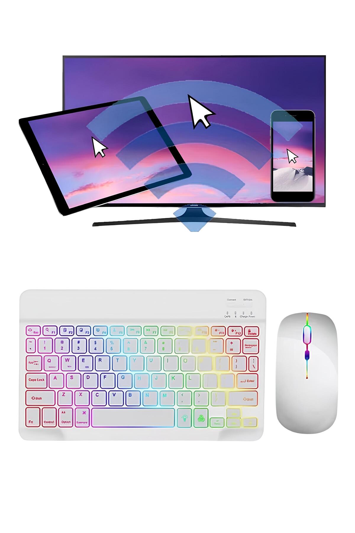 Mmctech Tüm Cihazlara Uyumlu Akıllı Taşınabilir Şarj Edilebilir Kablosuz Rgb Bluetooth Klavye ve Mause Seti