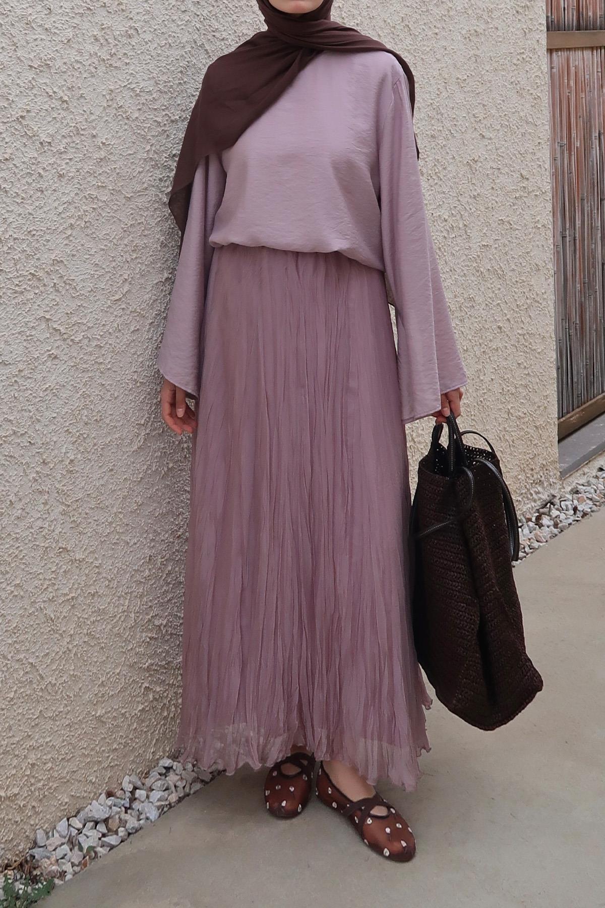 Moca Else Şifon Etek Lila