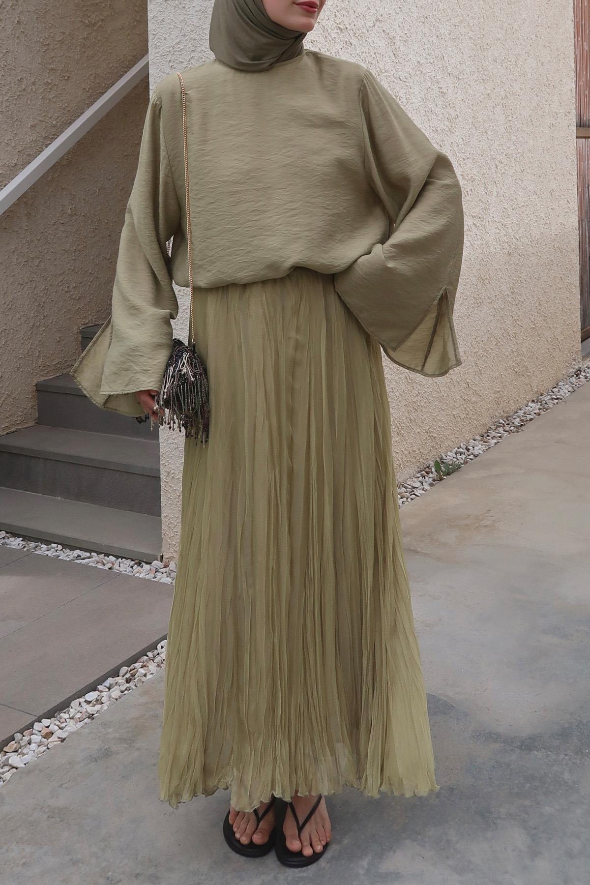 Moca Else Şifon Etek Olive