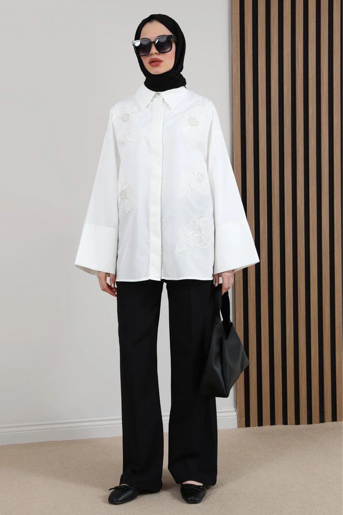 moda auram Çiçek İşlemeli Gömlek Özellikleri