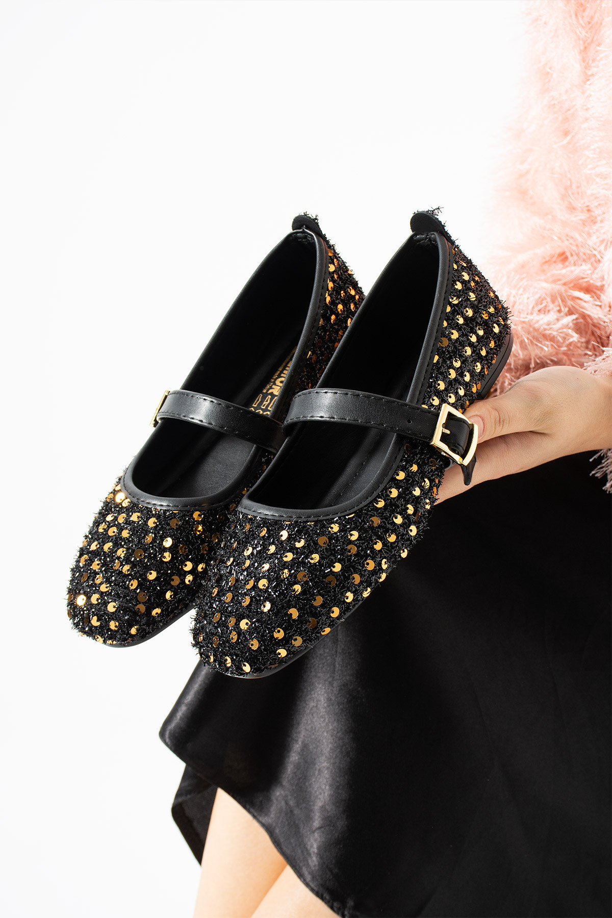 Moda Devrin Altın Pullu Babet Günlük Ayakkabı