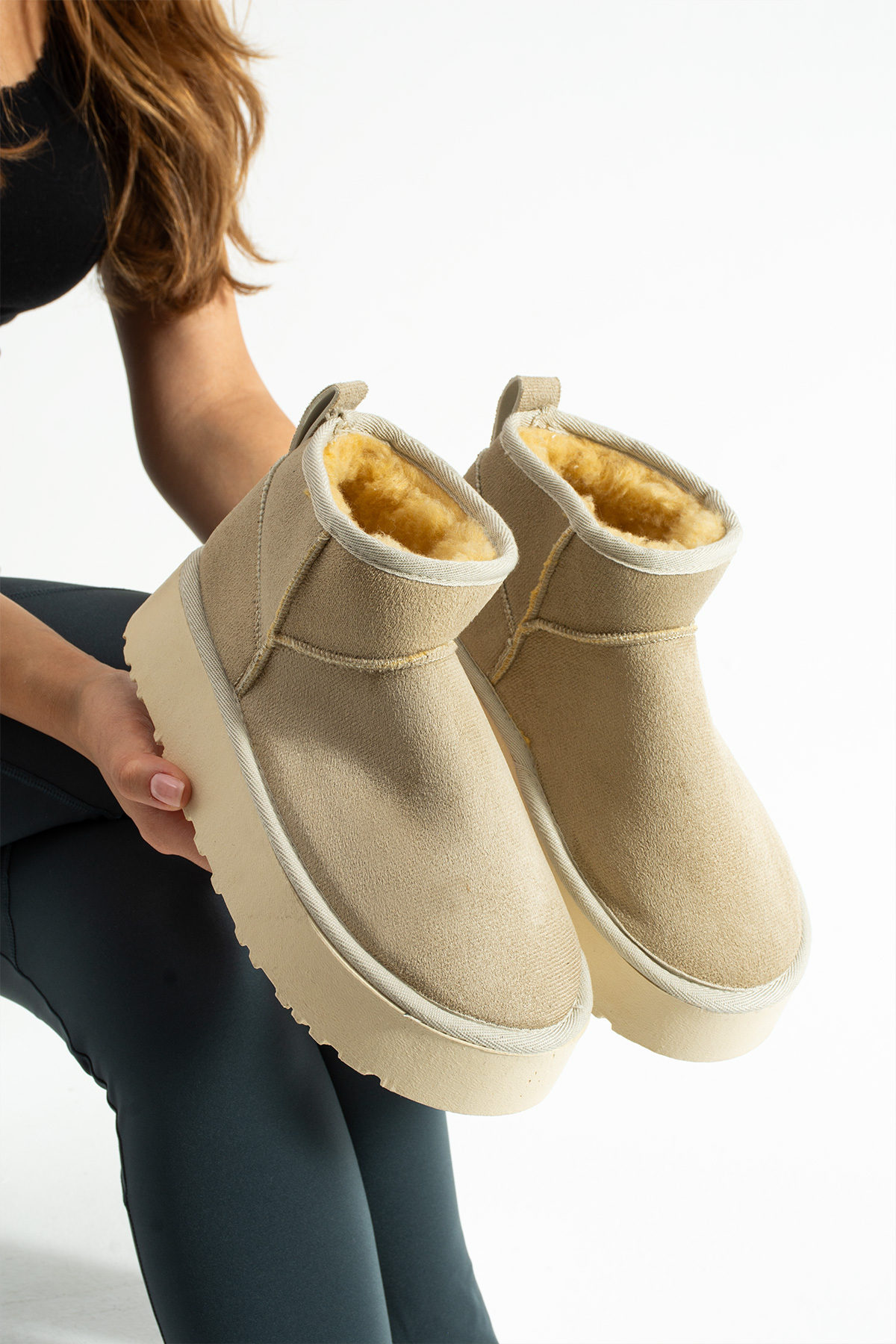 Moda Devrin Bej Süet İçi Yünlü Kalın Taban Bot