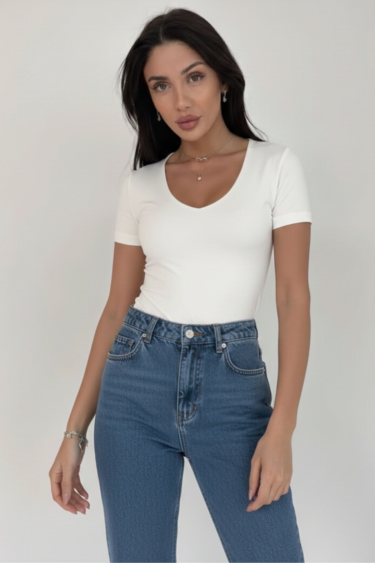 Moda Küpü Kadın Beyaz Basic V Yaka Tişört Özellikleri