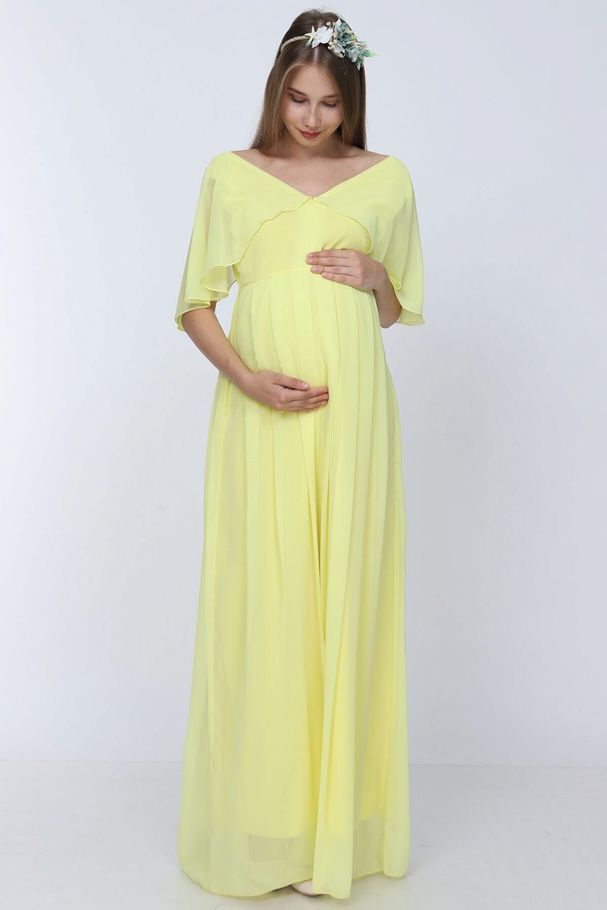MODA LABİO Melek Kol Hamile Elbisesi Sarı