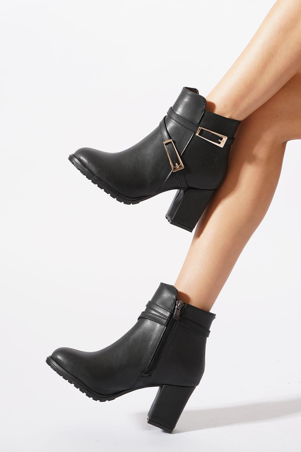 Moda Pie Kolef Çift Tokalı Kadın Bot Siyah Cilt Özellikleri
