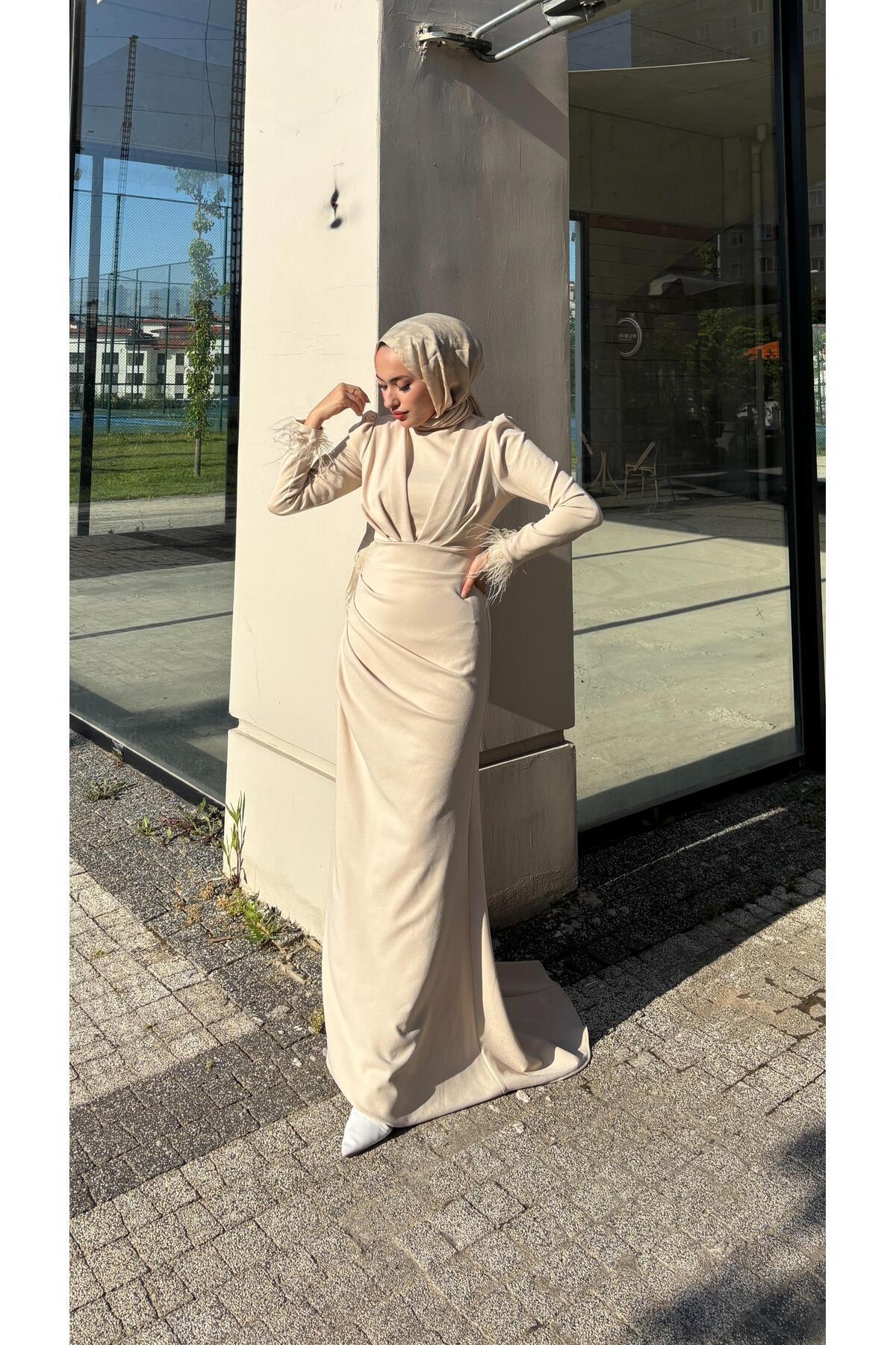 moda zeynaa BESTE ÇİFT ÖRME KREP TESETTÜR ELBİSE