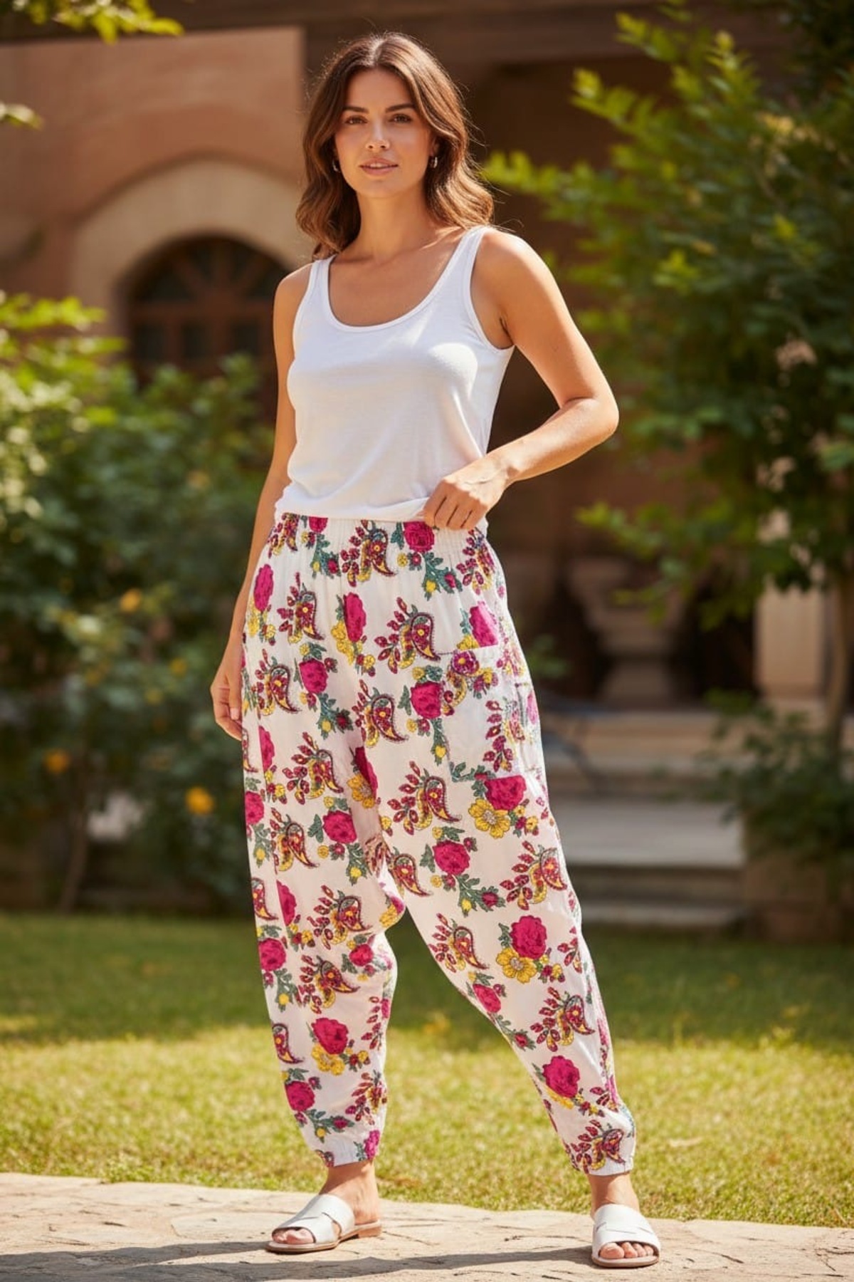 MODA Çiçek Desenli Cepli Şalvar