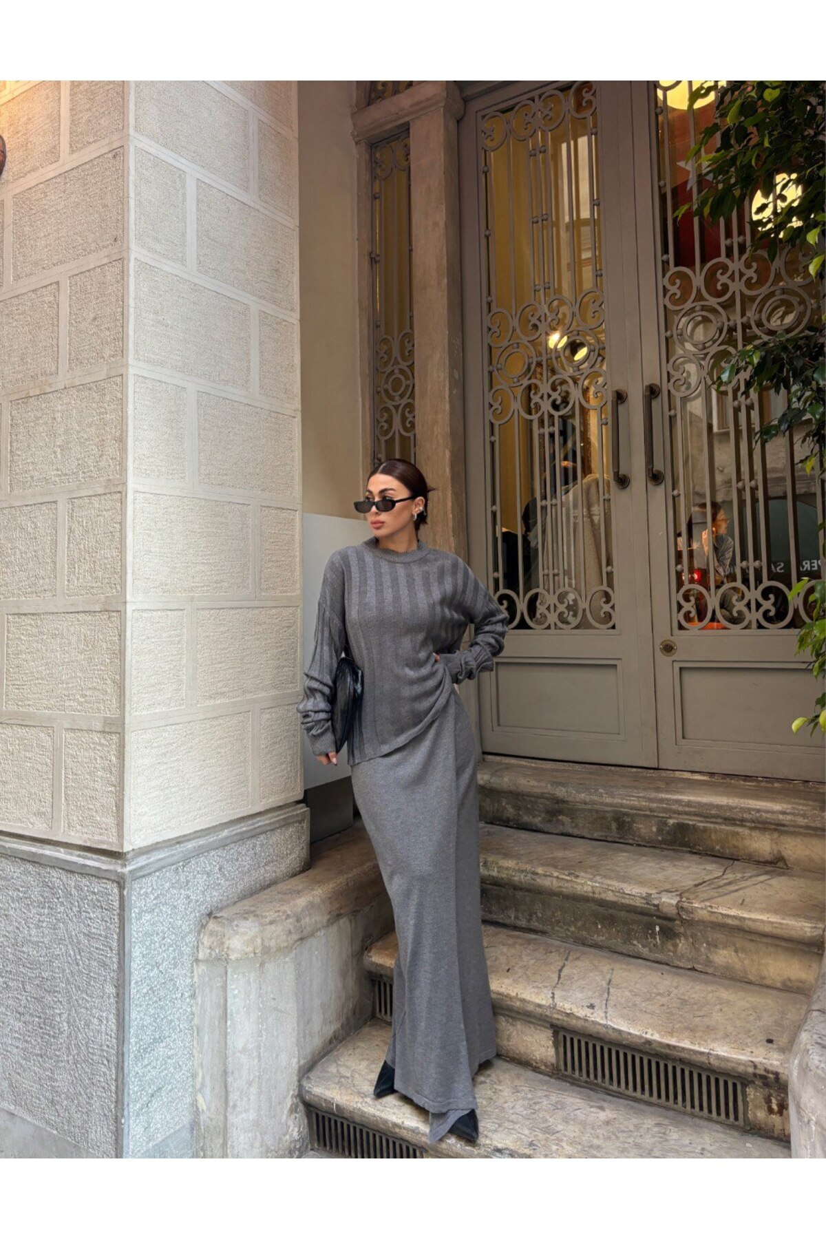 MODA Kadın Etek Bluz Triko Takım