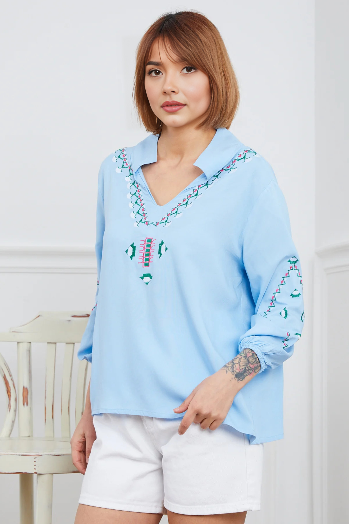 MODA Nakışlı Bluz | Mavi Özellikleri