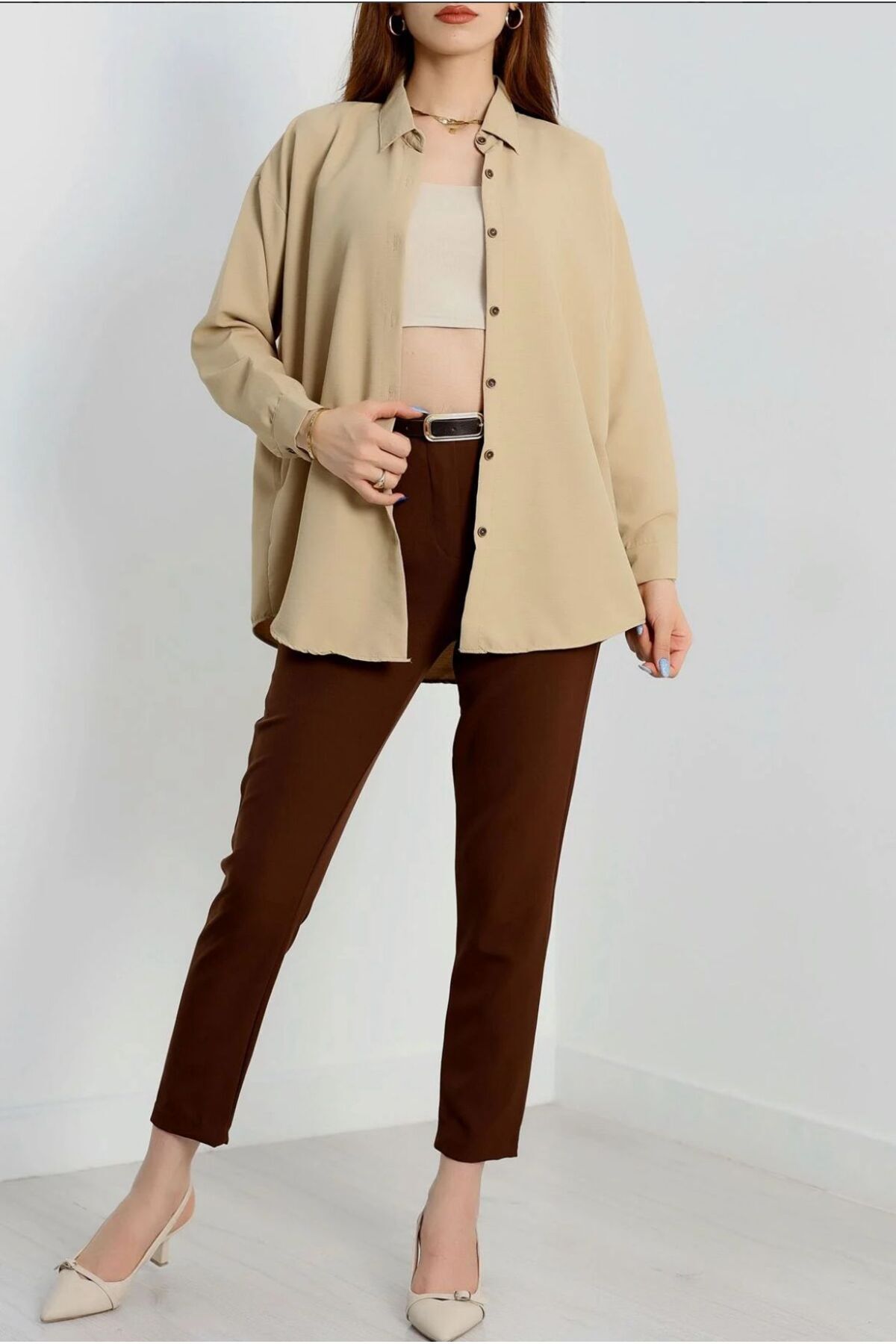 MODA Oversize Koyu Bej Gömlek Özellikleri