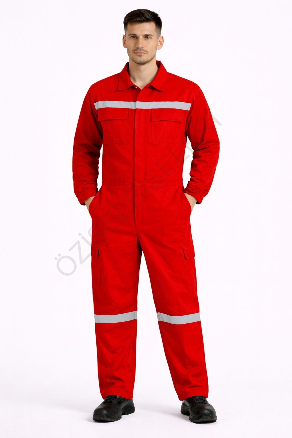 Ana Kumaş (Dış Yüzey): %100 Pamuk Gabardin (Bazı üretimlerde %65 Pamuk %35 Polyester karışım olabilir.) Kumaş Türü: 7/7 Gabardin (Dimi / Twill Dokuma) Reflektör Şerit: Polyester tabanlı reflektif bant Dikiş İpliği: Dayanıklı polyester iplik