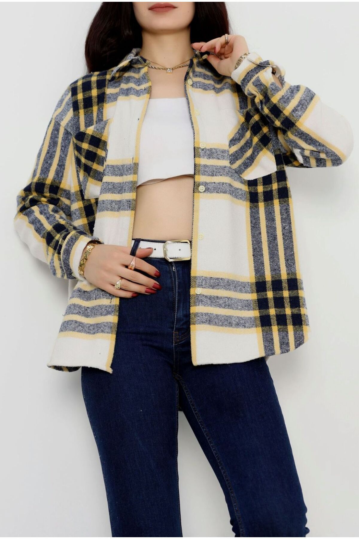 MODA SARI BEYAZ ODUNCU GÖMLEK