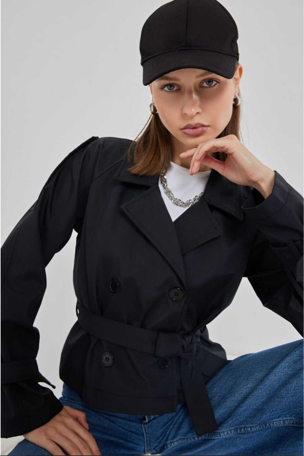 MODA SİYAH KISA TRENCHKOT Özellikleri