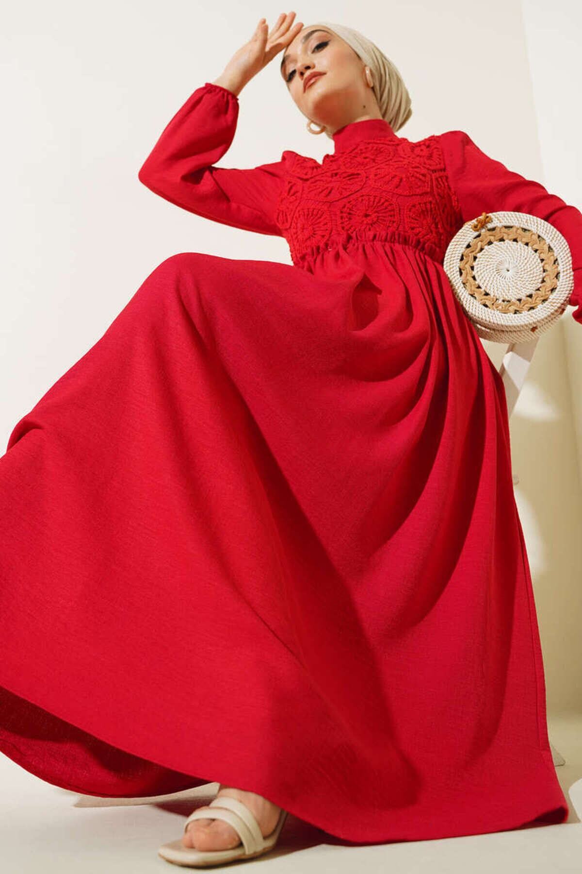 modabirsen Önü Dantel Örgü Detaylı Elbise