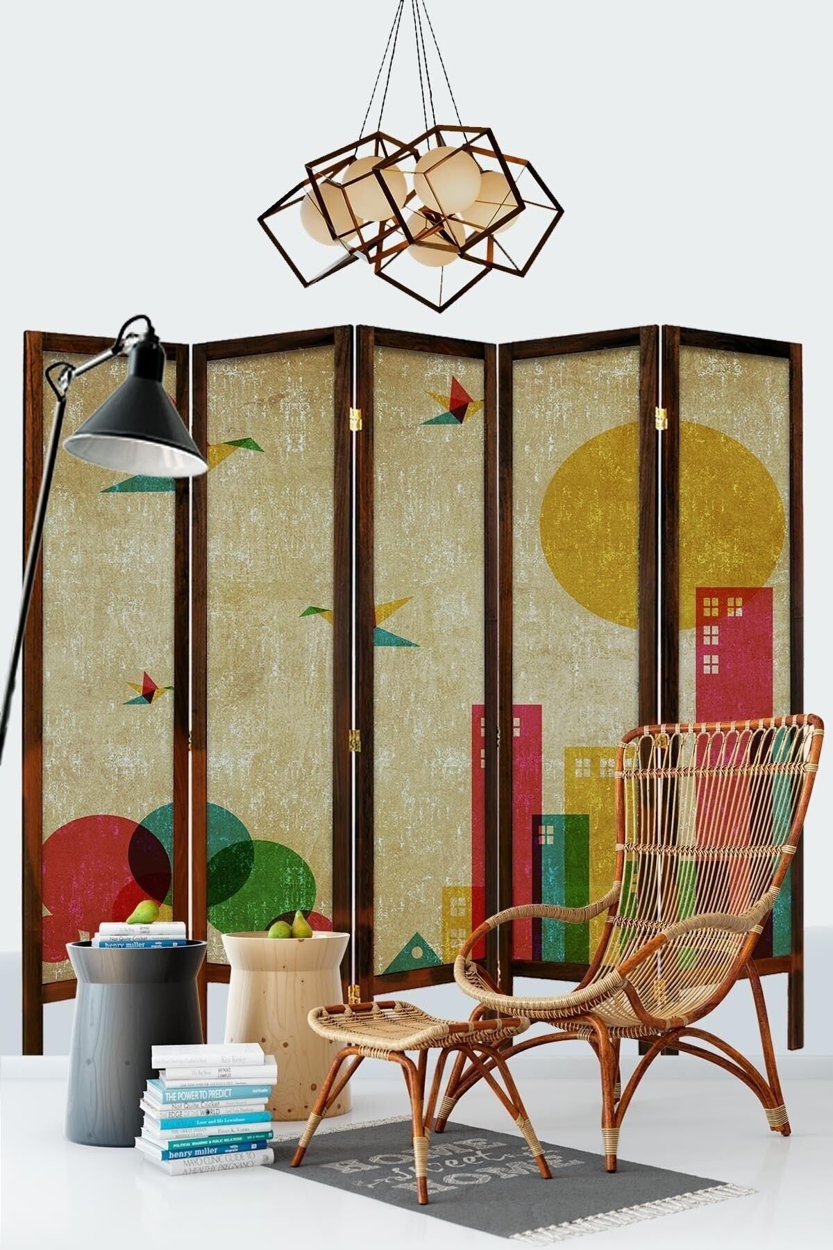 Modacanvas 5 Kanat Masif Ahşap Kumaş Paravan