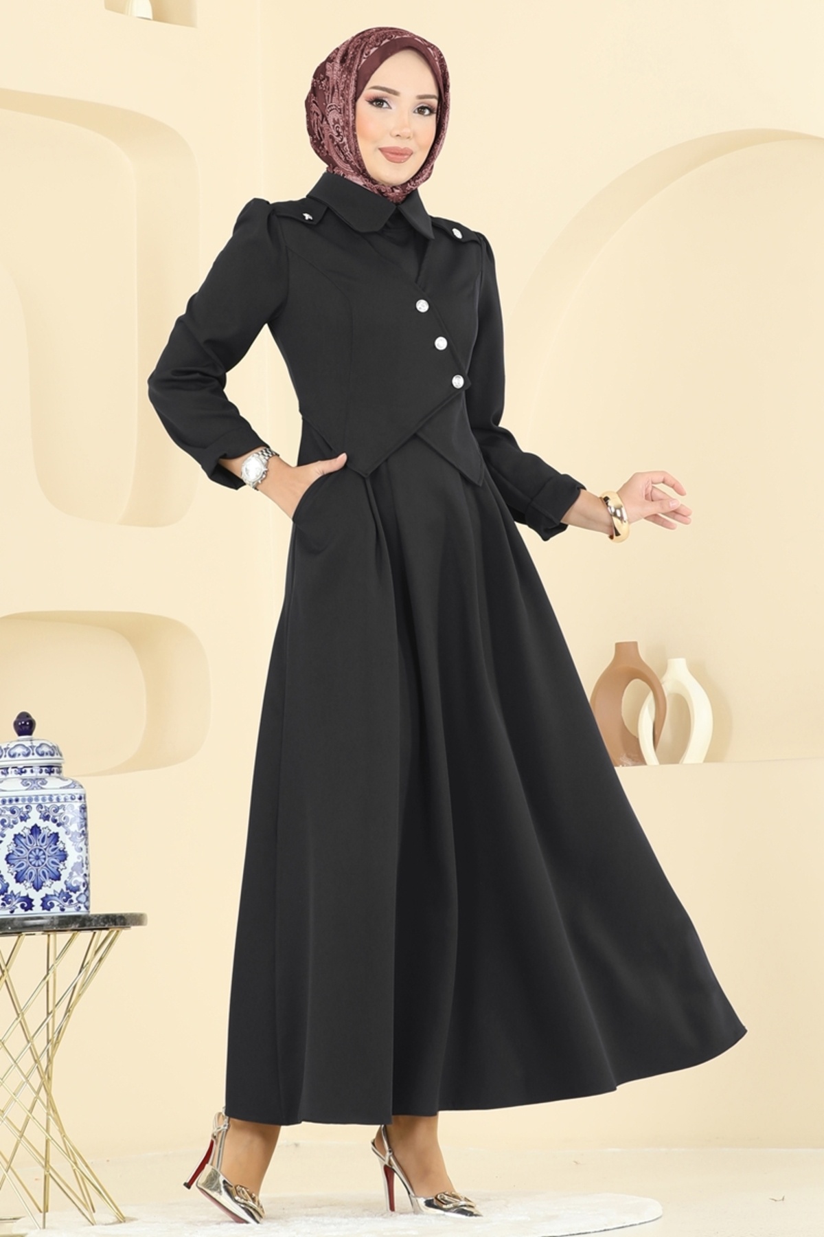 ModaMerve Ceket Detaylı Dabıl Elbise 2743SL432-MS Siyah Özellikleri