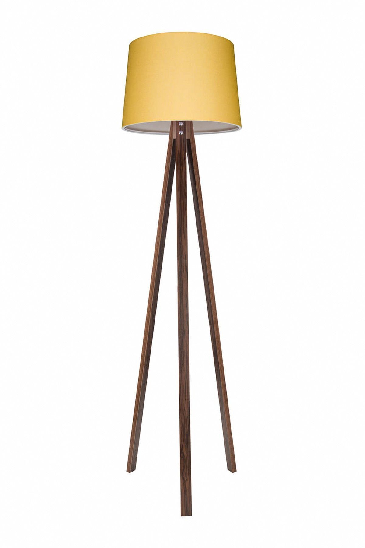 Modamonline Ahşap Kozalak Lambader 3 Ayaklı Abajur Sarı Başlık Kahve Ayak 3039