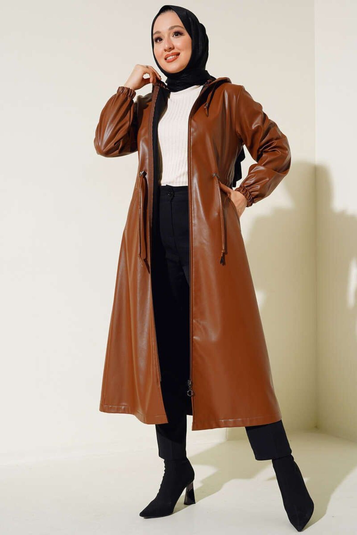modasindoma kadın kapüşonlu deri ceket