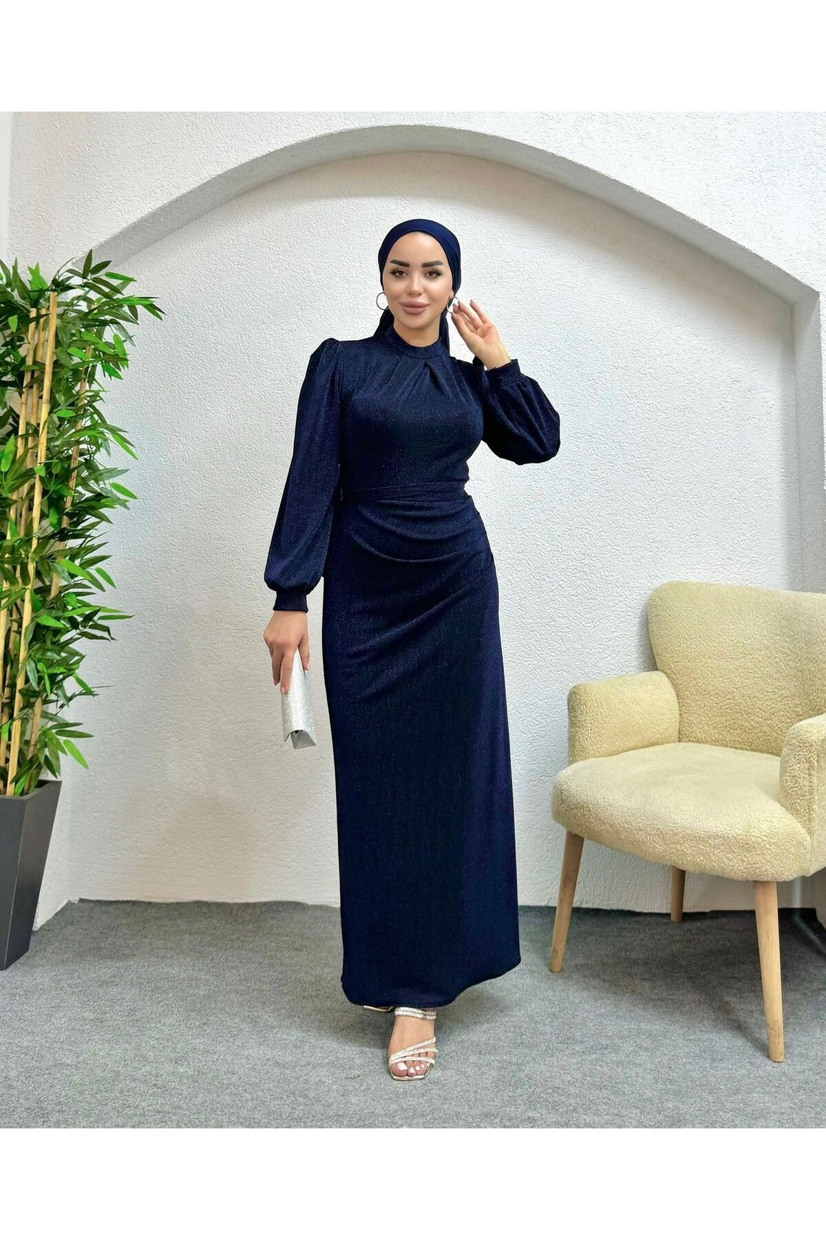 modasusev Simli Belden Drapeli Tesettür Abiye