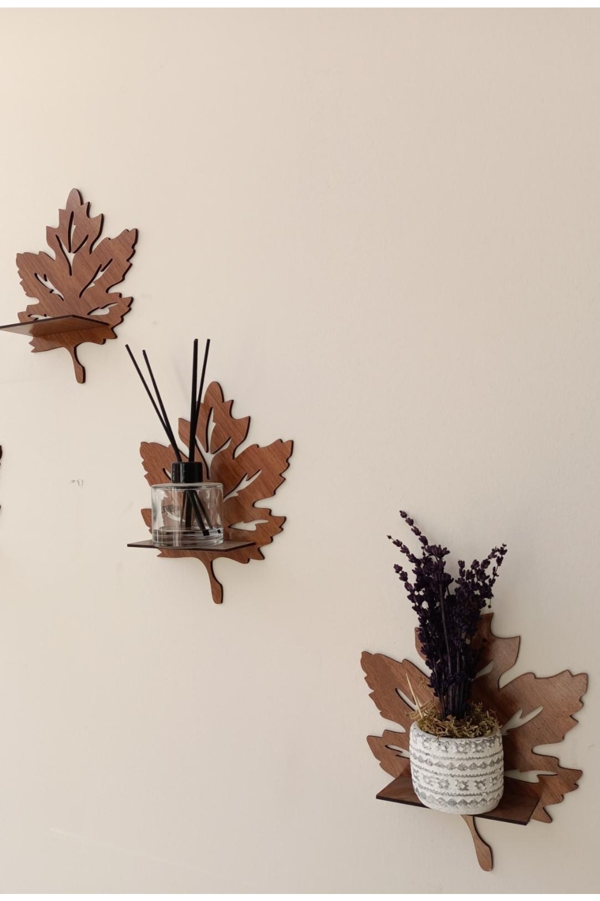 MODAT 3'lü Ahşap Duvar Süsü Rafı Yaprak Mumluk Duvar Dekoru Aplik Tablo Obj