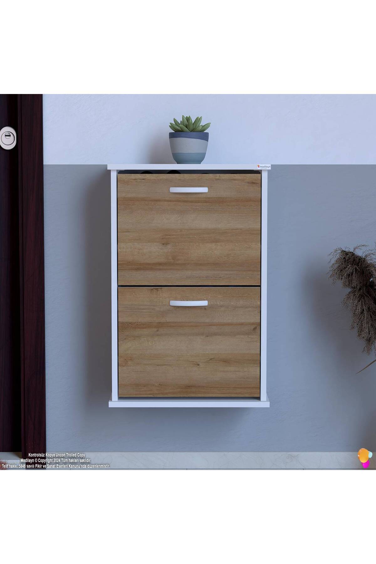 Modilayn UMAY Asma Kapı Önü 52x78x25,5 cm’lik 2 Düşer Kapak 4 Göz Bölmeli Ayakkabılık