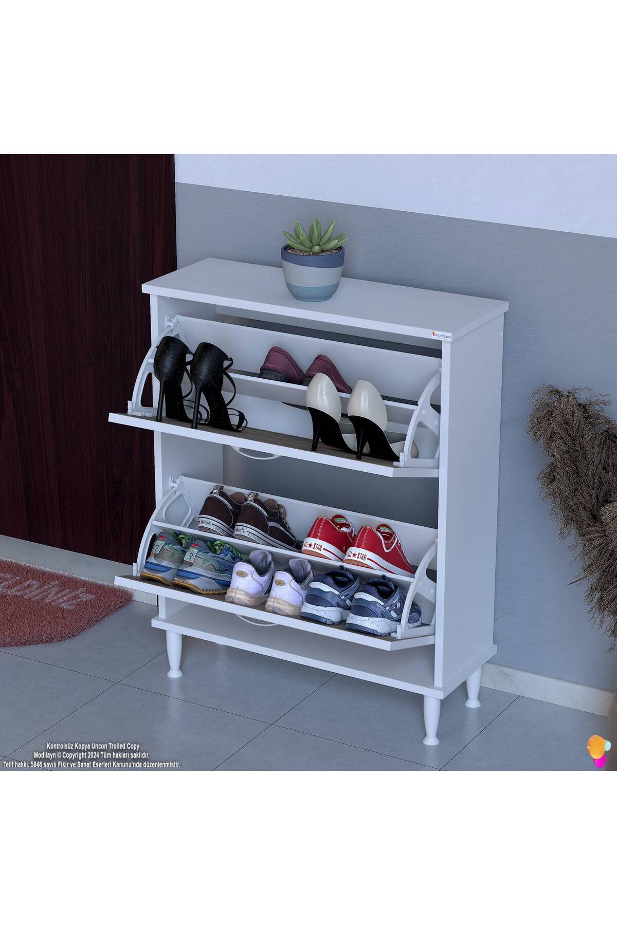 Modilayn UMAY Kapı Önü 72x90x25, 5 cm’ lik 2 Düşer Kapak 4 Göz Bölmeli Ayakkabılık